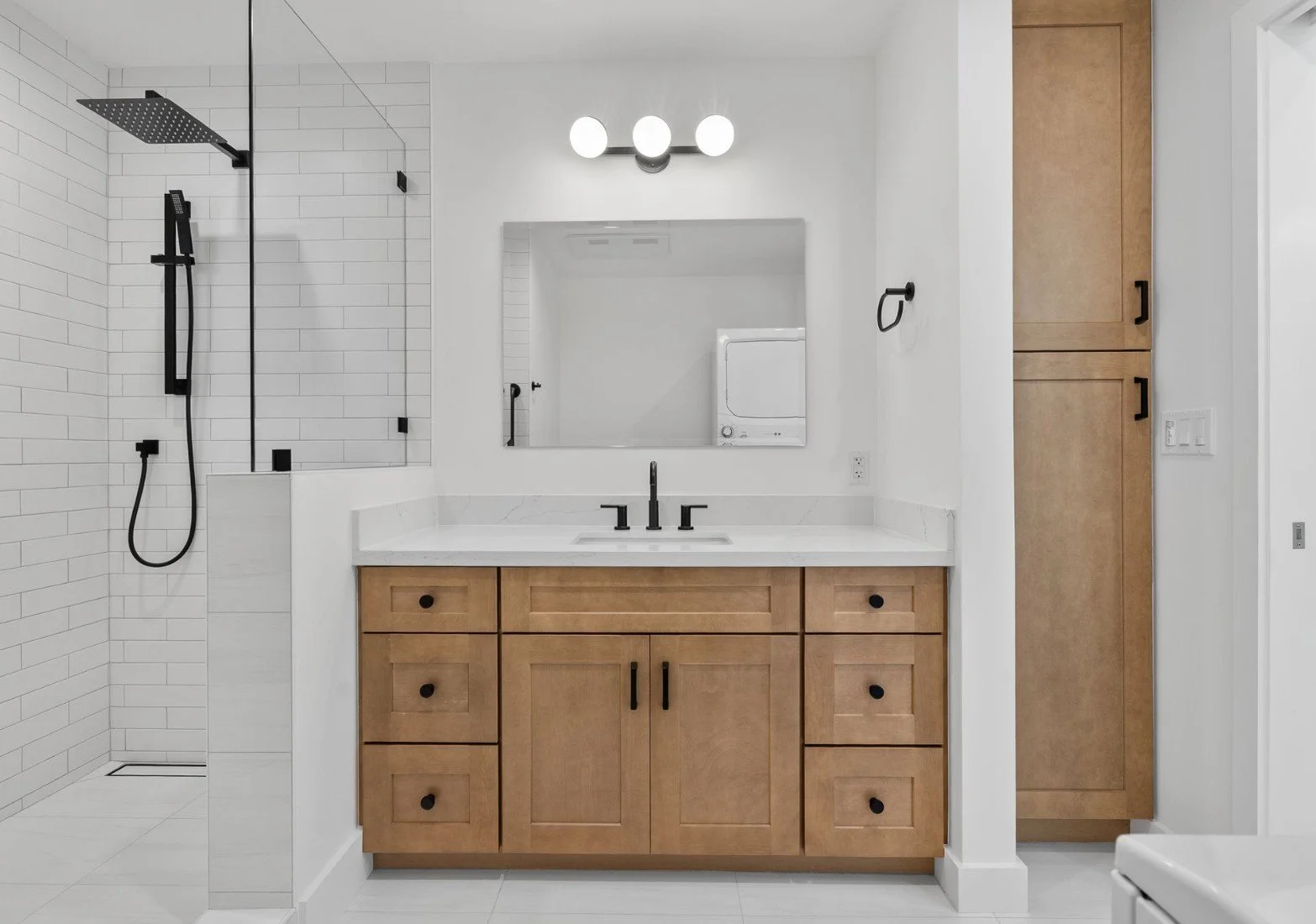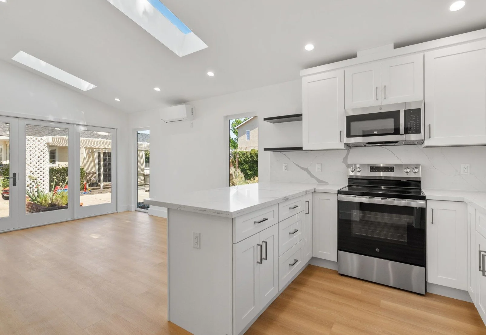 This ADU was thoughtfully designed and built to bring the family closer together. It serves as the new home for the homeowner’s mother, allowing her to age comfortably beside her son. The design features simple, clean finishes that create a warm and inviting atmosphere for family time. White and oak shaker cabinets blend seamlessly with warm LVP flooring and subtle black accents, balancing modern elegance with cozy comfort.